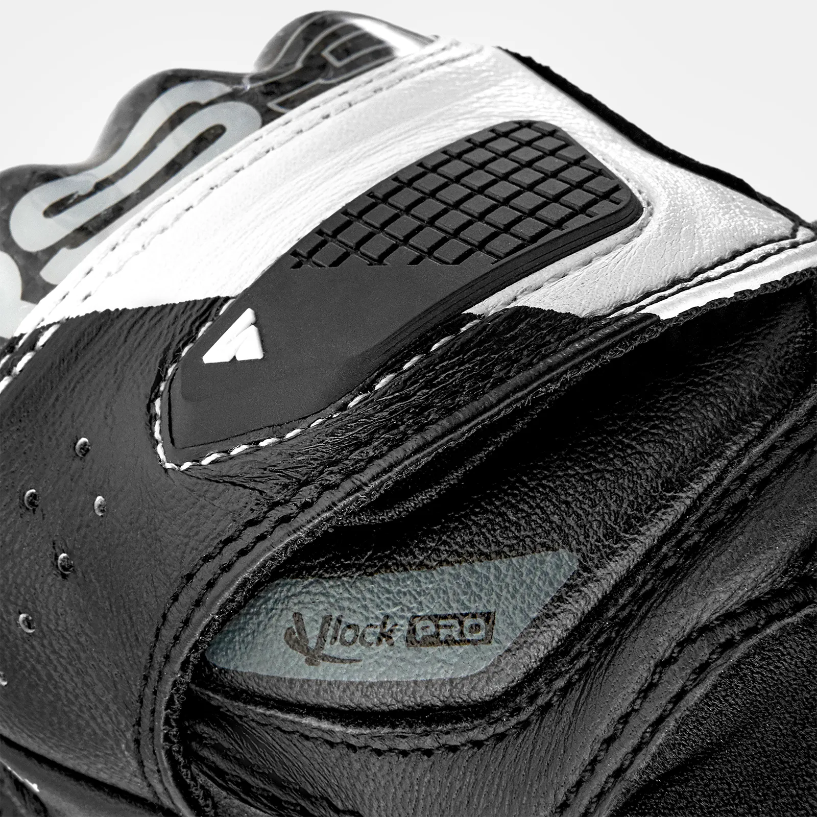 Mit Tablettfinger, Dehnungsstrecken Und Schwimmende Knöcheltechnologie (Wo sich der Knöchelschutz mit Ihrer Hand bewegt), bekommen Sie Bewegungsfreiheit ohne Druckpunkte. V-Lock Pro ™ Verschluss Und lange Neoprenkissen halten den Handschuh auch während des harten Fahrens sicher an Ort und Stelle.