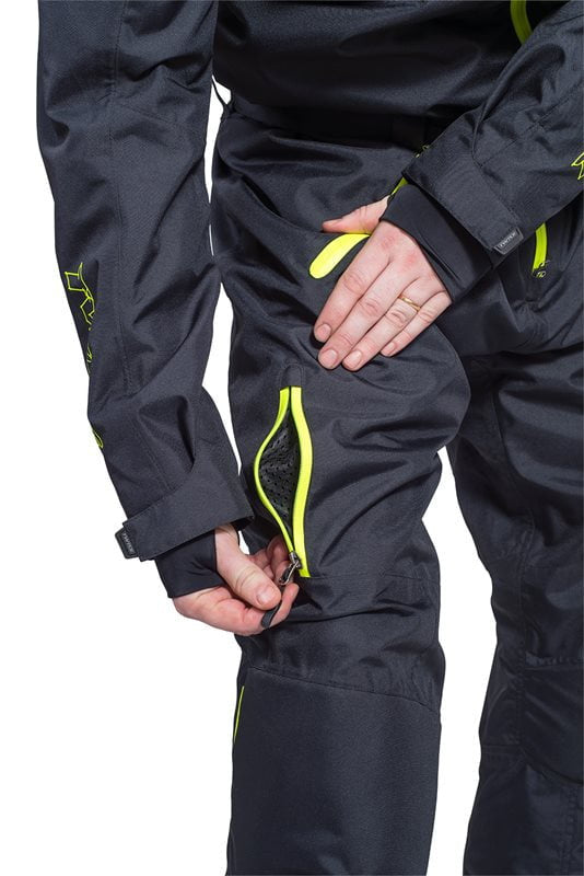 Bei der Entscheidung gibt es für einen einfachen Eingang viel Schneeschloss und Reißverschluss vom Beinende bis zum Knie.