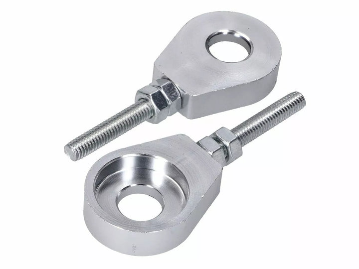 Anodized Aluminum Chain Tensions Set of 2 Pieces suitable for moped / Mokick rear Axle with 12mm diameter. The Set Comes With M6 Lock Nuts., Overall Length: 75mm, Hole Diameter: 12.5mm, Thread: M6, Thread Length: 40mm