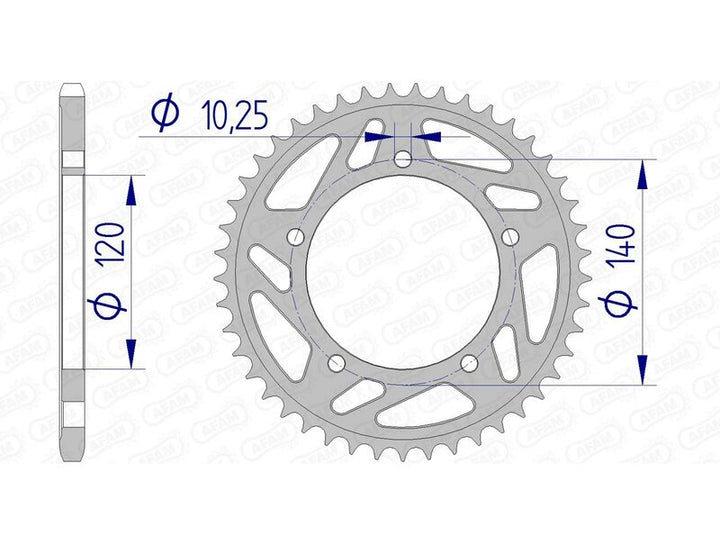 Afam aluminum crown gears are made of an alloy that is both light and tough. The Quality of Machining and the Precision of the Cutting Make AFM A Worldwide Standard Settes for Motorcycle Transmission Parts. Racing Aluminum Crown Gear Ultra-Light with Hard Anodizationreinforced Resistance to free and wearrange-topping Finish and Qualityessential for Competitive Riding Chain_pitch: 520.0 Material: Aluminum Rear_Polet_Teet_theet: 45.0.0 REAR_PROET_SSION: Ultra-Light Hard Anodized