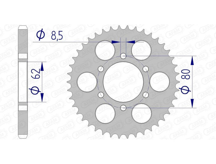 Afam aluminum crown gears are made of an alloy that is both light and tough. The Quality of Machining and the Precision of the Cutting Make AFM A Worldwide Standard Settes for Motorcycle Transmission Parts. Racing Aluminum Crown Gear Ultra-Light with Hard Anodizationreinforced Resistance to free and wearrange-topping Finish and Qualityessential for Competitive Riding Chain_pitch: 428.0 Material: Aluminum Rear_Poket_teeth_Count REAR_PROET_SSION: Ultra-Light Hard Anodized