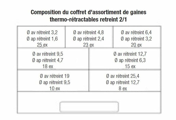 Made in irradiated polyolefin To give high durability, flexibility and perfect fit at a shrink temperature on +90 ° C.. Perfect for the workshop, garage or hobby user who wants all sizes close at hand.