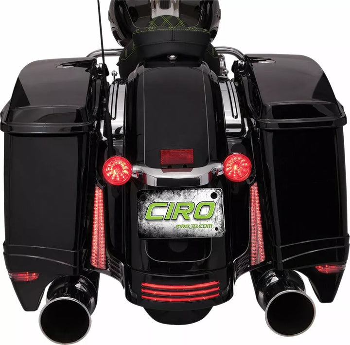 Designed to Seamlesly Fill The Space Between The Bags and Fender with a Perfect Fit, Dramatically Increase Rear Visibility, Unique Ciro Multi-Function Controller Provides Red Running and Brake Lighting with Amber Turn Signals, Plasma Led Turn Signal Technology Distance, Easy Plug-and-Play Installation