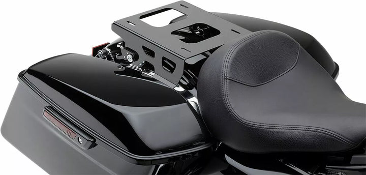 Mount this tour Pack to Solo Seat Equipped Street slides or road slides or Other dresser/2014-2020 Baggers, heavy gauge American Steel-Laser Cut, form, then Polish to a high lust before chrome chrome plaering or black powder coating, detacher can be installed or removed in a matter of seconds, made in the USA