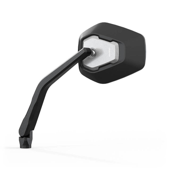 Rising and Flat Trapezoids Create the Futuristic Design of the Highsider Esagano-RS Mirror Series, Which Thus Picks Up The Design Language of Modern Motorcycles. The Base Body of the Mirror Head, Made of High-Quality Plastic, Encloses The Distinctive Inlay, which is CNC Machined from Aluminum. This symbolizes the design Language of the esagano product family and creates a unique recognition value with the Rising and flat tapered geometries. The Bead Blasted and Matte Black Anodized Surface of the Aluminum Contrasts with the Surface of the Mirror Head, Completing the Image. The Stem, in Aluminum, Alles! At the same time, thanks to its design, it offers Enough Space Between The Handle Area and Mirror Stem.