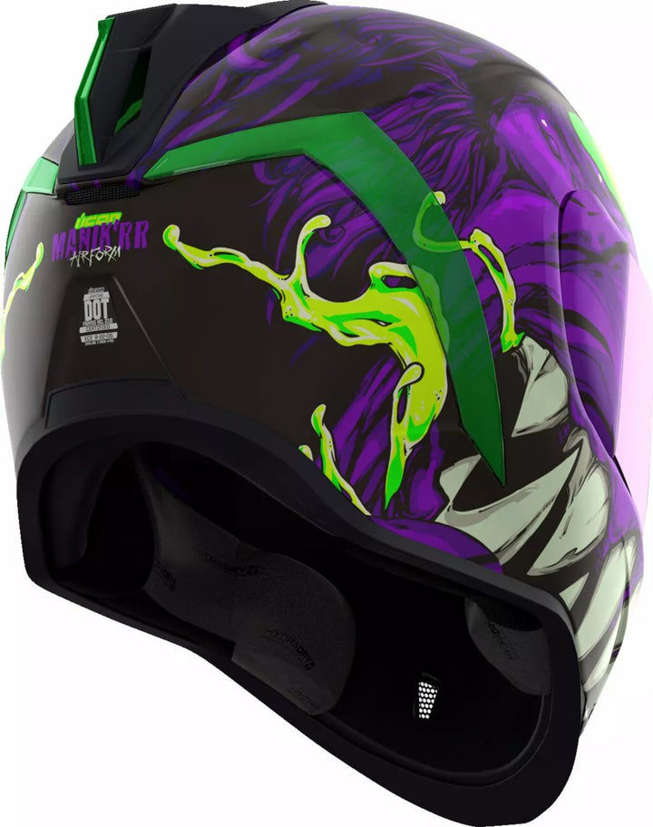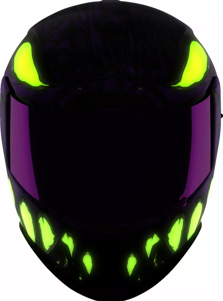 Continuous Venting System, FAG-FREE ICON OPTICS ™ Shield with Rapid-release ™ System, Injection Molded Polycarbonate Shell for Strength, Internal Airflow Geometry, Sculpted NECK Roll, Prolock ™ Switsch, the EXTERIOR WITH LOCKING SHIVING SWEQU Visor must only be used while the main face shield is in the fully closed position, removable Molded Breath Deflector, Removable Hydradry ™ 3-Piece Moisture Wicking Liner, Internal Speaker Pockets Work With Icon's R.A.U. Bluetooth Device, Includes Dark Smoke Dropshield ™ and Rubatone Black Speedfin ™