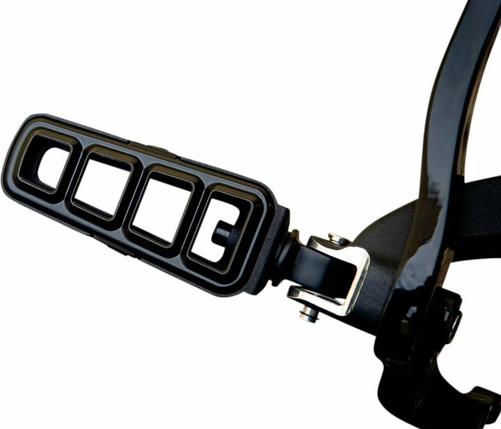 2-part system ALLOWING YOU TO CHANGE YOUR PEGS WITHOUT PURCHASING NEW ADAPters, Requires Footpegs Without Adapters, Allows the Angle of the FootPeg and Floorboard to Be Set and Locked Into Place, Features splines that match Floorboards