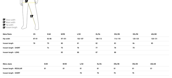 Protection: Aramid reinforcements on hips, knees, and back. Adjustable CE level 1 knee protection. CE level 1 hip protection prepared.