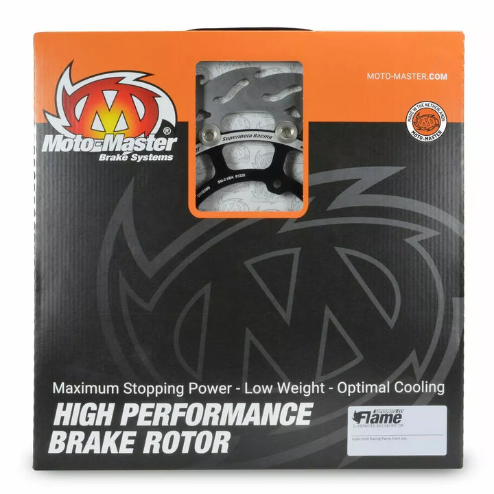 320mm Floating Front Flame Rotors Are Special Designed For Use With Moto-Master 4-Piston Calipers and are not an oe replacement, The Inner Carrier is an Aluminum Anodized Piece, and Rotor Thickness Has Been Increased Over Moto Master's Supermil Vigorous Testing Process and Are Able To Withstand Temperatures Up To 1.004 ᄚ F Without any deformation or free loss (Fading)