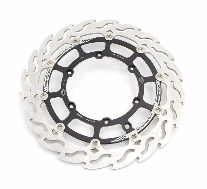 320mm Floating Front Flame Rotors Are Special Designed For Use With Moto-Master 4-Piston Calipers and are not an oe replacement, The Inner Carrier is an Aluminum Anodized Piece, and Rotor Thickness Has Been Increased Over Moto Master's Supermil Vigorous Testing Process and Are Able To Withstand Temperatures Up To 1.004 ᄚ F Without any deformation or free loss (Fading)