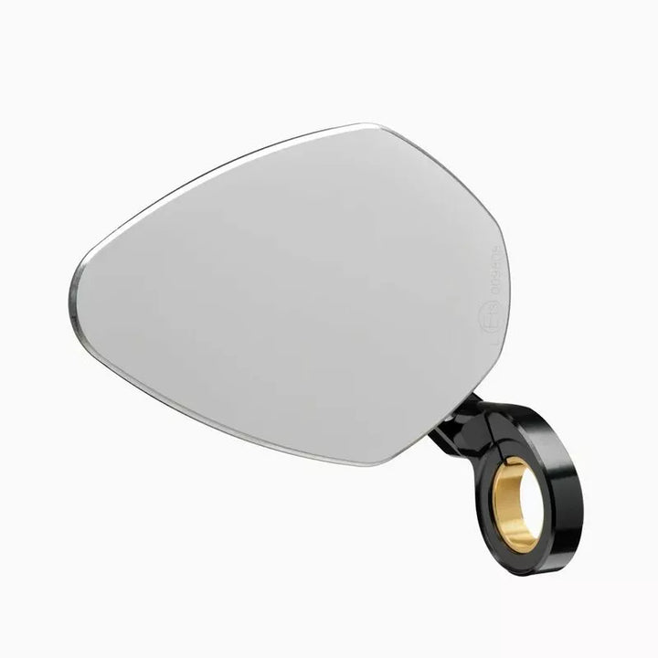 The Handlebar End Mirror Can Be Mounted Above or Below the Handlebar. The Angle of the Mirror Arm is Individually Selectable., Our Glasless Mirror Series Mo.view is Unique in the World. The Special Feature of Our Mirrors is the Patented Mirror Surface, Which Is Worked Directly From the Metal of the Body. The Aluminum Itself is the Mirror Surface., The Mirror Body Itself Beces Very Thin and Light, Creating a Weightless Design With No Rim or Frame. The Convex Mirror Surface is Manufactured by Fly Cutting Using Diamond Tools On Ultra-precision Machines in Berlin. It is then made resistant to oxidation, corrosion and abrasion by a complex plasma coating in a vacuum., The mirror body, mirror arm and the clamp for the handle end are milled on cnc machines from the solid aluminum and anodize high quality. , All Screws are Made of Stainless Steel. , The precise ball joints the Comfortable and Very Stable Adjustment of the Mirror. Glass Breakage or Fallen Out Glasses Are Simply Not Possible., The Handlebar End Mirror Can Be Mounted Above or Below The Handlebars., The Small Arm Can Be Swivelled. , The Mirror is suitable for the right and left side. It can be mounted directly on the handleable end (22 mm and 1 inch) or, if the grips and fittings cannot be moved, using the mo.view bar adapter., Mirror Body width: 122 mm., Mirror Body Body Height: 83 mm. Mirror Arm: 72 mm., Clamp Diameter: Can Be Used For 22 mm and 1 inch Handlebars., CLAMP WIDTH: 10 mm., Weight: 128 g., Scope of Delivery: 1x Rear-View Mirror Mo.view Sport 60 (With Ece Marking) With Arm, 1x Clamp & Clamp & Inf