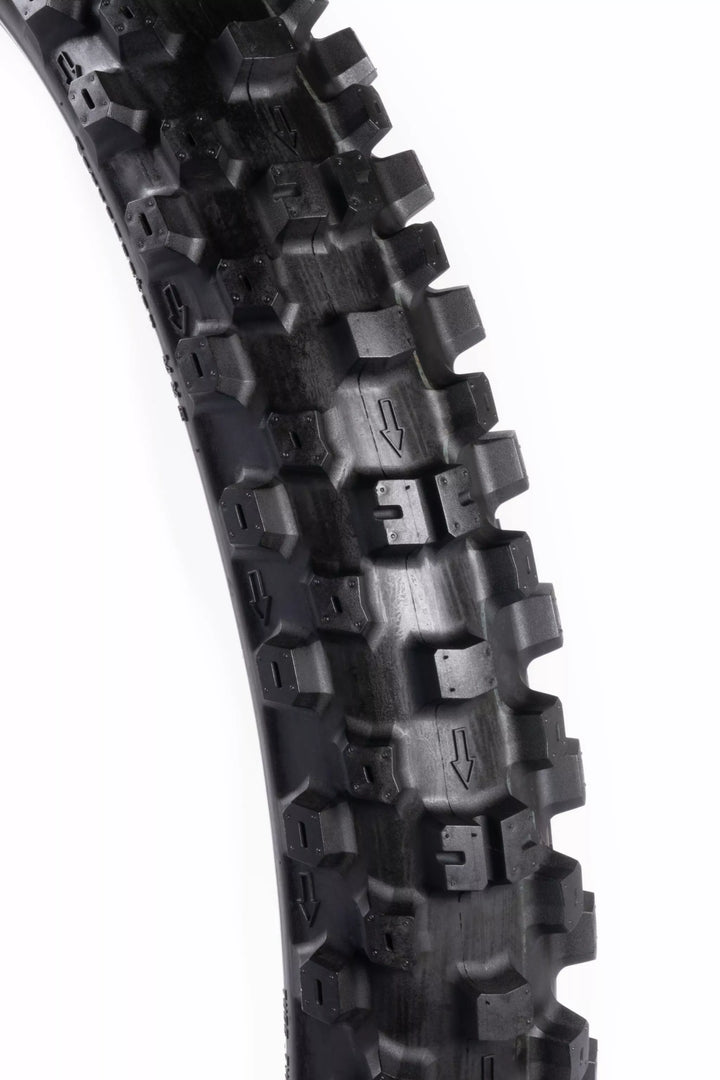 The All New Terrapactor Mxs (MX Soft) Competition Tyre, Is Our Most Innovative Offering for Soft Terrain Riding, specifically Tailored for Soft Soil, Mixed Mud/Dry Mx Tracks., The TerraPactor Mxs Boasts a Lightweight Construction. Primary Goal to Provide Exceptional Performance on Soft Terrains. The MXS Features a Chunky, Open Treat Pattern Designed to Prevent Build-Up and Keep The Treat Clean Along With Ensuring a Firm Grip Even in Sticky Conditions. To enhance the Tyre's flexibility and grip, we have integrated cutting-ed Treat flex zones within the tyre's carcass and knobs., Application-MX, Soft Terrain (Soft soil, mixed mud/dry), Two Front and the TRACK AND 100-21 for Traditional Feel Tell Taller Profile for Increased Contact Patch and Better Feel and Feedback Through Hard Edged Ruts, All New Mx Compound For Improved Longevity and Durability, Light Weight Carcass, Flex Zones Incorated Into Carcass for Improved Cornering Grip and Drive Strability The Feel and Grip of Cornering and Accerading