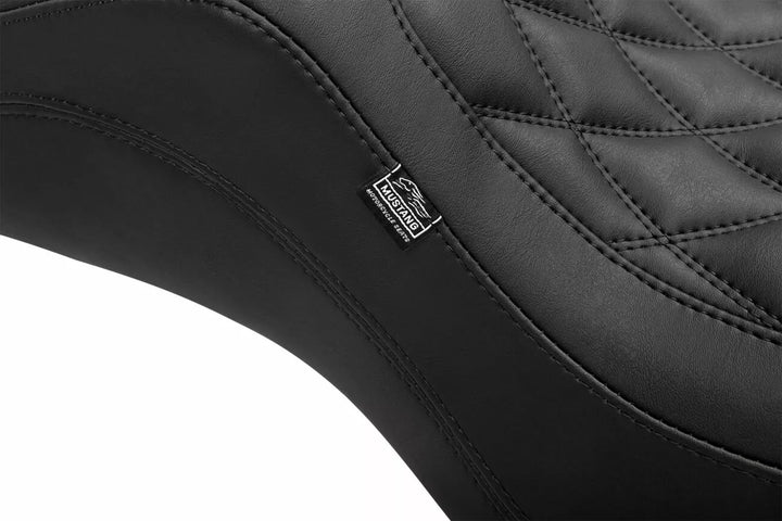Double Diamond Stitch Pattern With Colored Thread Options Offer A New Take On A Classic Favorite, Crafted For Rider Comfort, The Seat Features A Special Designed Cross Section That Alleviates Tailbone Pressure, Offering Sea Sea and Style In One Sleek Pack For Optimal Comfort While Providing Exceptional Lower Back Support With Its High-Rising Wall, Wide Squared-Off Tail Section A Stable Foundation For Passengers or Luggage, ENSURING A SMOOTH and Enjoyable Ride for the 2-up Rider Rider, Positions Riders Sligtly Riders Rider Lower Back Support, Performance-Packed cover features split panel, contrasting stitch, perforated look, and functional gripper vinyl, carefully curated Tail section Alows for Comfortable 2-up riding, Mustang's proprietary controlled density fum formula After Years of Use, Marine-grade FIBERGLASS BASEPLATE FOR LONG LASTING SUPPORT AND DURABILITY, with polyurethane bumpers to absorb vibration