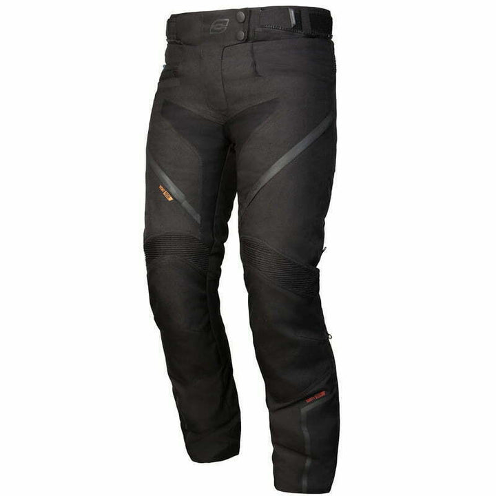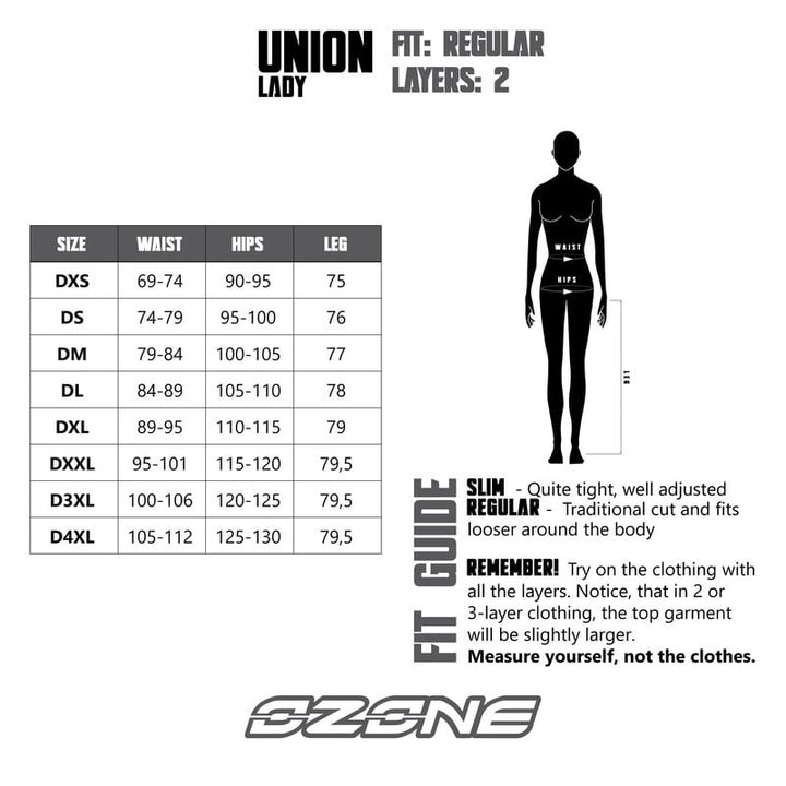 Motorcycle pants for women from union with elastic cuts over their knees. They have an extensive ventilation system with two air flow channels. Equipped with a removable membrane and height adjustable knee protection. They have reflective elements and pockets for hip protection.