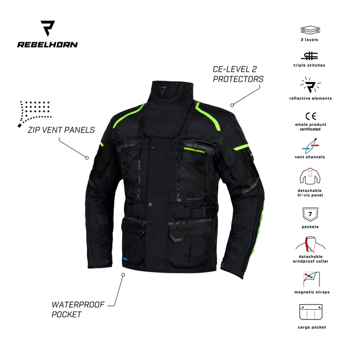 A 3-layer, versatile touring stand. Equipped with an efficient reissaus, an extensive ventilation system with large, openable breast panels, as well as with a windproof collar.