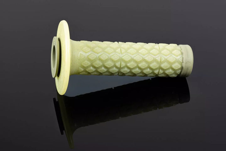 Ergo Diamond ™ Vibration Dampers, Soft Outer Compound and Firm Inner Compound, Tuff-end ™ Grip End, Pro Flange Created to Reduce Inboard Thumb Abrasion Based on Extensive Rider Feedback