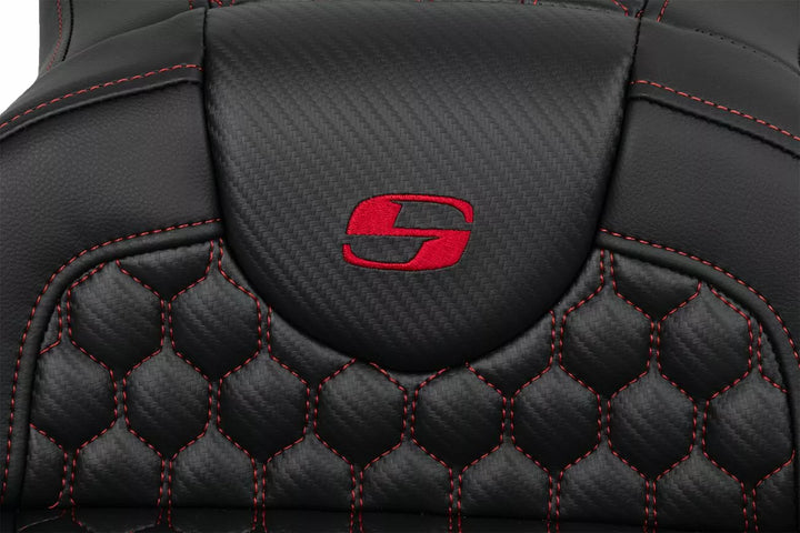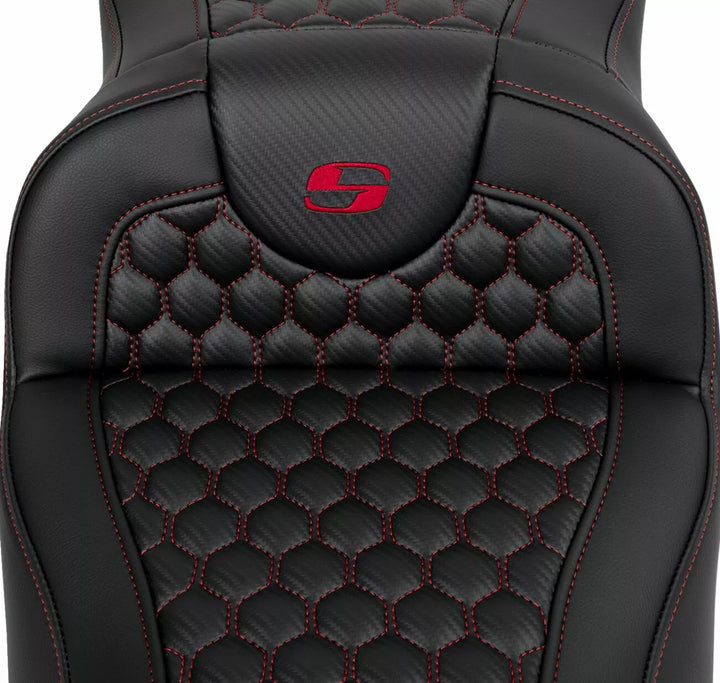 Each Seat Combines a Gel-Core ル Interior and Pro-Foam ル To Create A Foam With A Balance of Compression and Resilience Gear Long Distance Comfort, Pro-Foam ル Unique Molding Process Creates, See Elevae Resistant, Self- Durability as well as Comfort, Honeycomb (HC) Pattern Incorporates Modern Geometry In A Stylish Seat Cover, Saddlegel ル In Front and Real Reduces Tailbone Pressure and Increases Circulation and Comfort for Both Driver and Passenger, Designed and Made in the USA