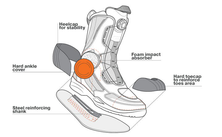 Shima Strato shoes weigh only 702 grams, which significantly affects the comfort of riding a motorcycle. The footwear uses a SAP ™ ankle protection and Armorplus shock absorber. Reinforced heel, ankles and toes as well as a special cross -enhanced sole provides easy stabilization when stagnant balancing the motorcycle. Non -slip -free, rubberized pillow will facilitate switching even under severe weather conditions. Reinforcement at this location prevents the shoes from being used too quickly, reducing the risk of injury and thus increases its life.