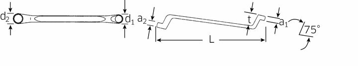 StahlwilleSTABIL® offset, DIN 838/ISO 10104 (metric sizes), Chrome Alloy Steel, Chrome plated, Measurement :, Spanner Opening mm : 8 x 10, L mm : 180, d1 mm : 13,1, d2 mm : 15,8, a1 mm : 7, a2 mm : 9, t mm : 21, Weight g : 61