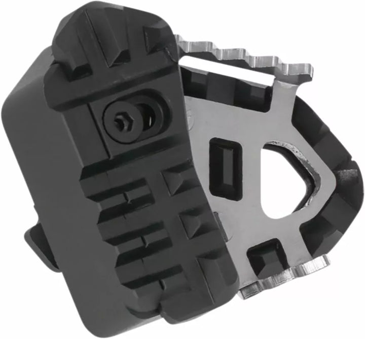 The Extension for Brake Pedal is Ideal for Off-Roading: It Enhances The Original Brake Arm Treat and Guarantees A Safe, controlled use of the brake. , When Standing, The Angle of Your Knee Changes, So Your Foot Cannot Put As Much Pressure on the Smaller pedal. , The extension of husbands it possible for the contact surface to be both broader and higher., Thanks to the raised contact surface, your foot is angled more shals, so it can reach and control the brake arm more easy, even when standing. , That Means the Extension for Brake Pedal Offers Better Safety and Better Control Over the Realar Brake., When Off-Roading, You Often Alternate Between Seated and Standing Positions. , In Addition to the Raised Surface, The Extension for Brake Pedal Features a Widacts Surface. , This is equipped with a ridged Surface, so it offers improved grip when the arm Surface is dirty or wet., Enhances the original Brake Pedal, Raised and wider Surface, Improved Grip Thanks to Ridged Surface ヨ Even Surfae Vet and Dirty