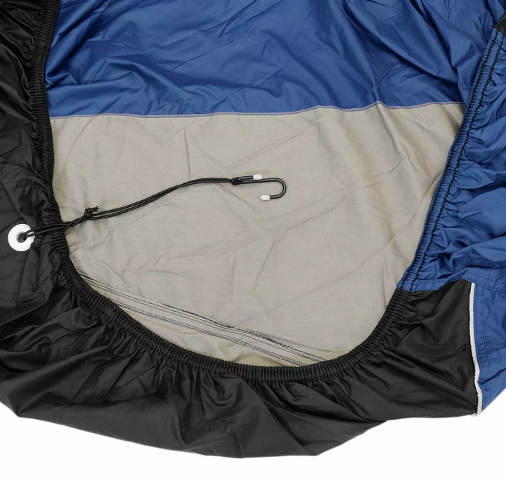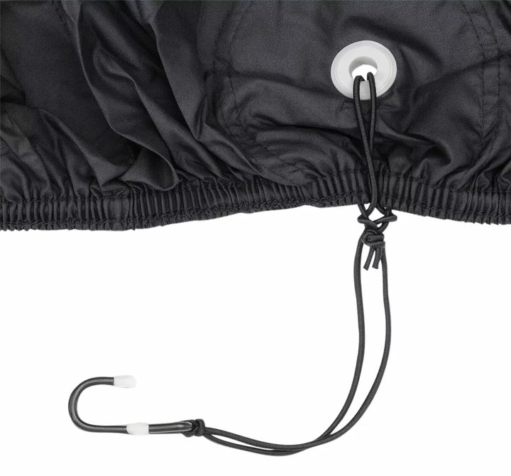 Water resistant, Lightweight, Polyurethane-Coated Polyester Construction, UV Stability Prevents Material Breakdown and Fading, Scorch-Resistant Exhaust Protection, Elastic Home and Bungee Cord for Tie Down, SoftTek Windshield System, ULTRAGE