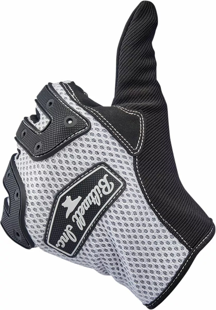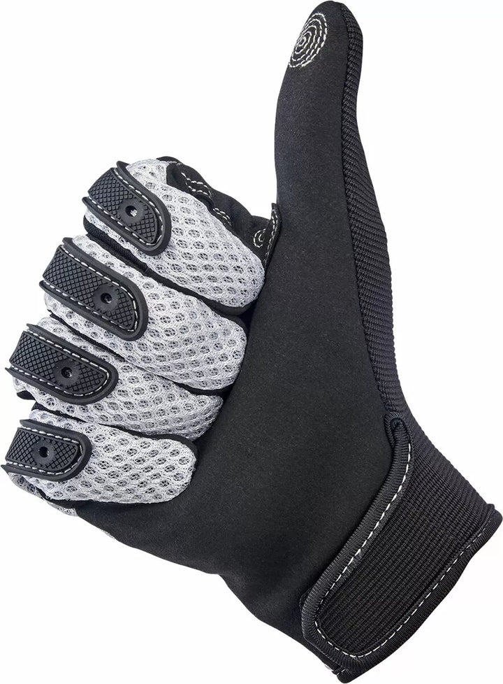 Synthetic Suede Palm Features Two-Way Stretch for a Snug, Comfortable Fit, Three-Ply, One-Piece Vented Polyester Back and Thumb Construction for Maximum Airflow, Flexible Thermoplastic Rubber Knuckle Guards and Shield Logo, Lycra® Expans and double-free polyester stitching, Thermoplastic Rubber Knuckle Guards on the Back of the Glove Provide Protection from Rocky Roost and Airborne Road Debris, A Double-Stitched Das Verstärkungsfeld am Daumen und des Indexfingers fügt Stremtth -Stiche in Fingern und Daumen hinzu, die Sie intelligenten Bildschirmen betreiben