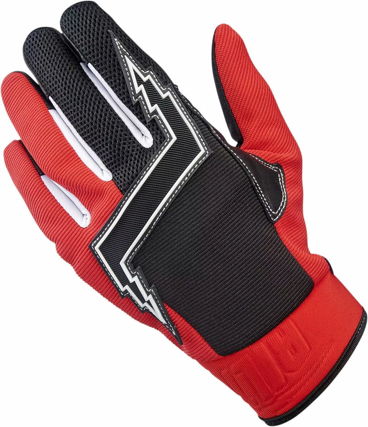 Design inspired by the 1980's Golden Age of Motocross, Goat Leather Palm and Thumb Reinforcement for Added Toughness in High Friction Areas With Durable Goatskin On Fingertips, Synthetic Suede Palm and Thumb Construction for a Snug, Stretab Flexibility, Three-Ply Woven Mesh Back Panel for Ventilation, Molded Two-Ply Neoprene Wrap With Adjustable Velcro Closure, Lycra® Expansion Panels in Finger Joints for Added Geschicklichkeit, robuste und doppelte Polyest-Lightning Bolt Knuckle Protector, 5 mm dickes verstecktes Neopren-Knöchelschutz, leitfähige Nähte in Fingern und Daumen können Sie intelligenter Bildschirm bedienen