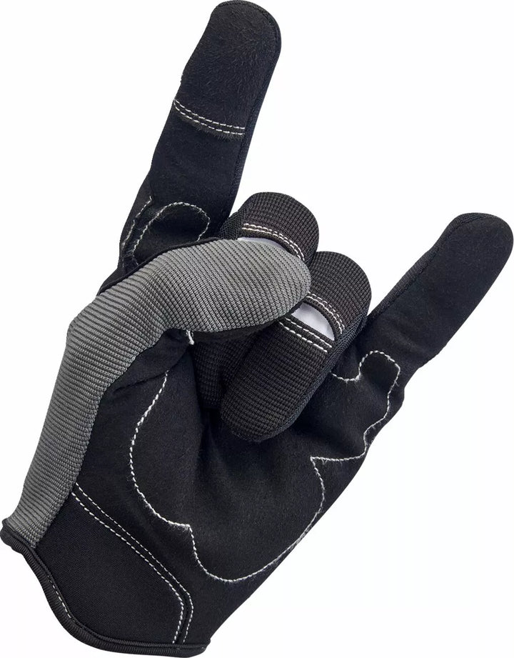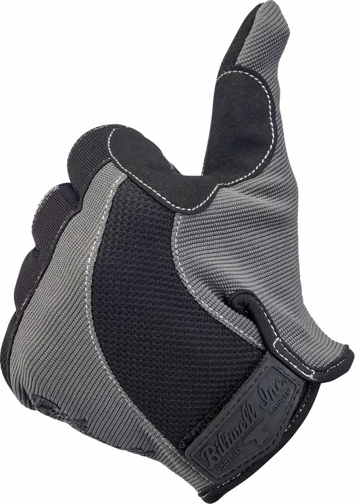 Zwei-Wege-Stretch-Polyester-Rückpaneele für Komfort, synthetische Lederpalme einschicht mit verstärktem Daumen, einstellbarer Wrap mit Klettverschluss und thermoplastischen Gummi-Biltwell-Schild, Lycra-Expansionsplatten in Fingergelenk hinzu