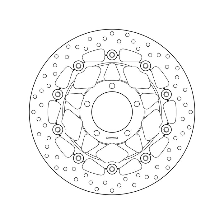 Brembo Serie Oro Bremsscheiben repräsentieren das Beste, was der Markt zu bieten hat, mit einer Produktpalette, die überragende technische Inhalte und Qualität aufweist. Erhältlich in sowohl festen als auch schwimmenden Versionen, sind diese Scheiben vollständig austauschbar mit den originalen Produktionsscheiben. Schwimmende ScheibeSchwimmende Scheiben bestehen aus nur den hochwertigsten verfügbaren Materialien, um unvergleichliche Leistung zu liefern. Diese bestehen aus einem Bremsscheibenrotor aus Edelstahl, der durch 10 Befestigungsschrauben mit einem eloxierten Aluminiumlegierungsdeckel verbunden ist. Höhere Bremskraft Qualität und Leistung garantiert Effizient bei allen Wetterbedingungen: Hitze, Regen, Kälte… Bremsscheibenform: Rund Scheibentyp: Schwimmend Bohrungsdurchmesser (mm): ø 10,5 Innendurchmesser: ø 78 Anzahl der Löcher: 5,0 Außendurchmesser: ø 320 Dicke (mm): 5 mm
