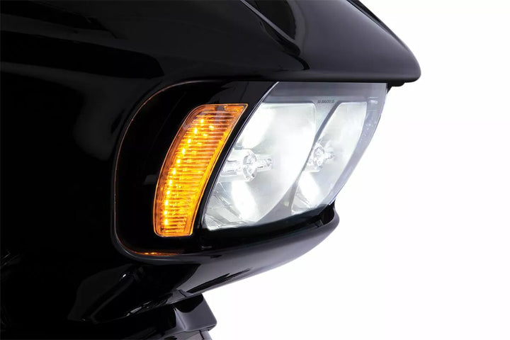 Klares Objektiv mit leuchtend weißen/bernsteinfarbenen LED-Leuchten, ersetzt Dul Factory Plastic-Trimm, das Objektiv ist abnehmbar zu Werksfarben, einfache Bolzen bei der Installation ohne Modifikation, Plug-and-Play-Verdrahtungsadapter, verwenden Sie Power Y-HARTNESS-TEIL Nr. 2120 Multiple beleuchtete Verkleidungszubehör