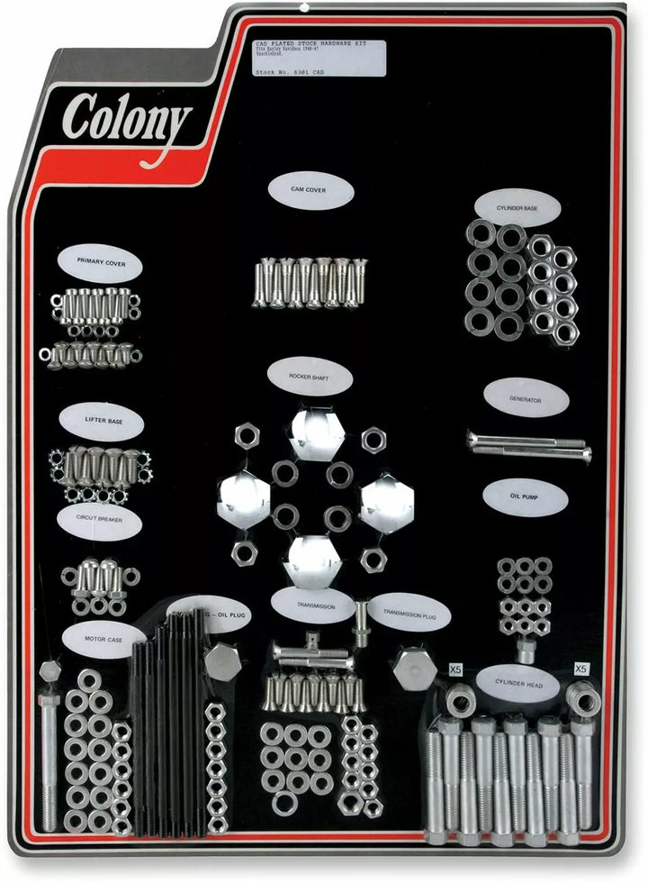 Das Kit enthält alle Stock-Motormuttern, Schrauben, Unterlegscheiben und Bolzen, alle Hardware-Treffen oder die ursprünglichen H-D-Spezifikationen von OUT in den USA.