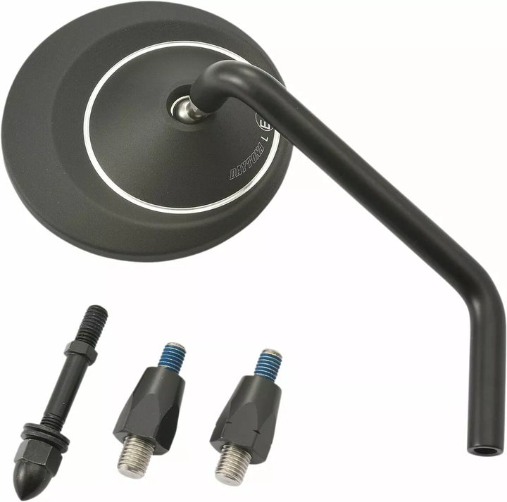 E-markiert, Materialspiegelkopf: Aluminium mit CNC-Oberfläche, Adapter M10 x P1.25 (R/H-Gewinde) und Harley enthalten, Materialspiegelarm: Stahl/Aluminium, CNC-Aluminiumkörper