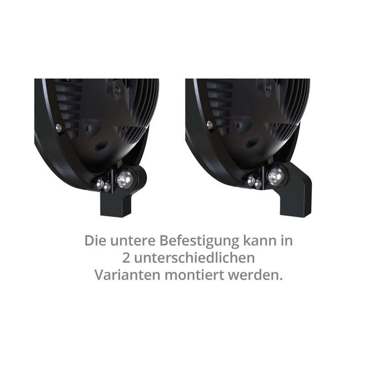 Für die variable Montage des Rampenlichts stehen zwei verschiedene Befestigungssysteme zur Verfügung.