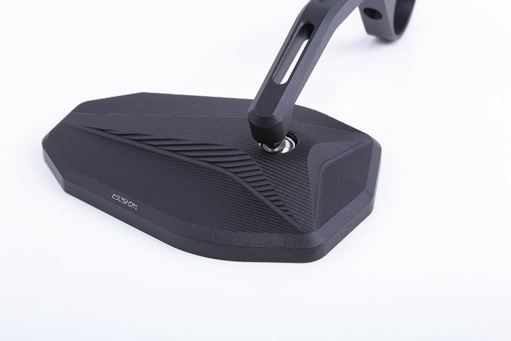 Ein eleganter nackter Endspiegel mit einem Kopf aus schwarzem, eloxiertem Aluminium. Die detaillierte CNC-verarbeitete Oberfläche mit Tracks lässt HighSider-Sieg-X noch anspruchsvoller erscheinen und verleiht der zeitlosen Form ein neues optisches Highlight. Passt sowohl 25,4 mm als auch 22 mm (22 mm) am Lenker und können sowohl auf der linken als auch auf der rechten Seite verwendet werden. E-genehmigt.