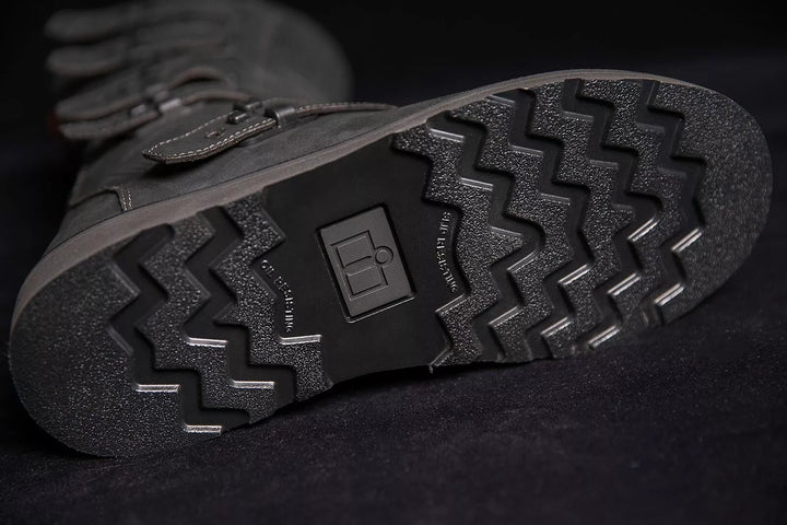 Premium-Leder-Obermaterial kombiniert mit Öl/Schlupf-resistenten Außensohlen für robuste Stil, fünf STRAP-Chassis ermöglichen eine bequeme Passform, Seitenrückfälle für die einfachen und ausgeschalteten, harten, verstärkten Schienbeinplatten und wirkungsbeständige Nylonschnalel, interne D3-Fahrt.