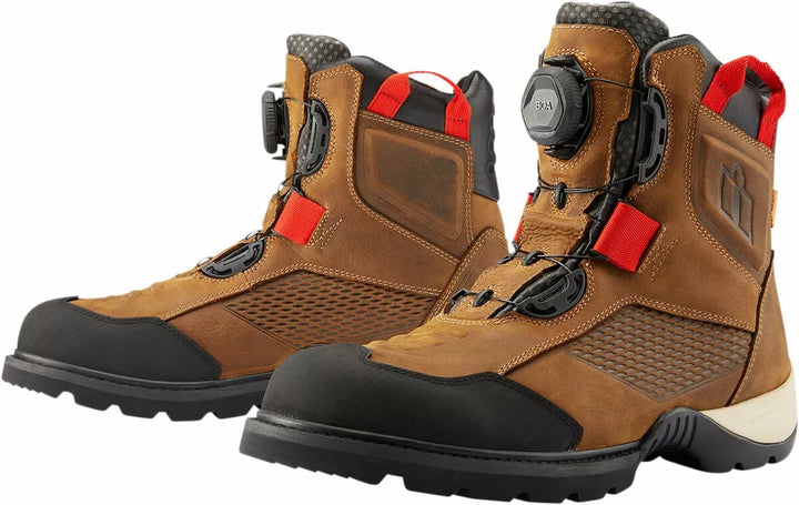Premium Leder Upper verfügt über eine wasserfeste Finish, atmungsaktives Ereignis, wasserdichte Liner helfen, trockene, hochschledigte Öl/ Schlupf-resistente Gummi-Außensohle trocken zu machen, die motorradische Leistung mit offener Zellpolyurethan-Einlegesübung Füße, BA, bietet. Bequeme Passform, Dual D3O® -Einsätze liefern Knöchelabdeckung, verstärkte Gummi -Zehenkappen, reflektierende Fersenakzente und Schalthebel -Grenzflächen -Nubs