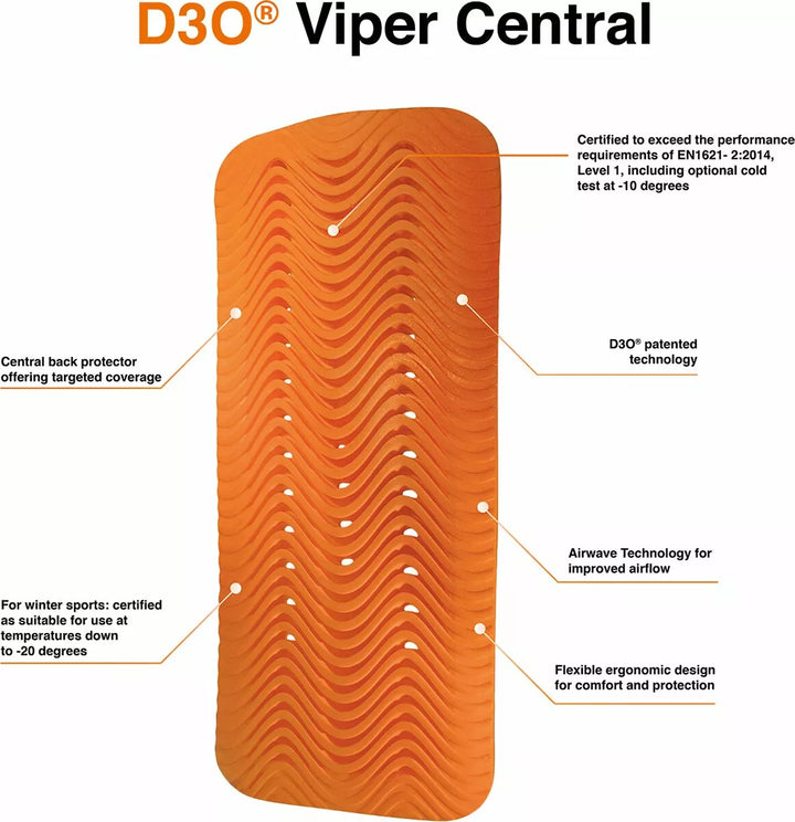 Extrem flexible, niedrige Profil und leichte Luftwellentechnologie für einen verbesserten Luftstrom für Wintersportarten: zertifiziert als geeignet für die Verwendung bei Temperaturen bis zu -20 °, 13 mm Dicke, Rückenschutz EN 1621-1: 2014 Level 1.