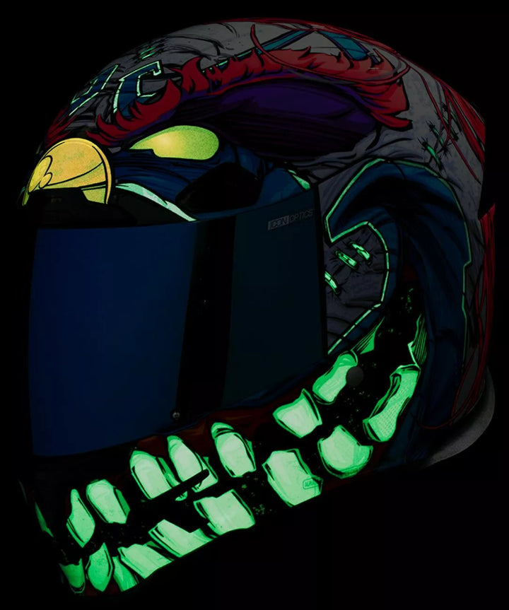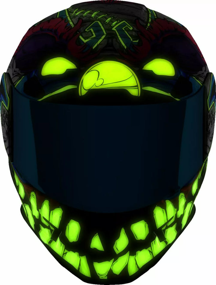 Icon Airfrene Pro ™ Krazy Klown 2 Ist der Helm für diejenigen, die gesehen und gehört werden wollen - sowohl auf als auch neben der Strecke. Mit seinem provokative und einzigartige Grafik und fortschrittliche technische Eigenschaften Dies ist ein Helm, der jemanden nicht unberührt lassen.