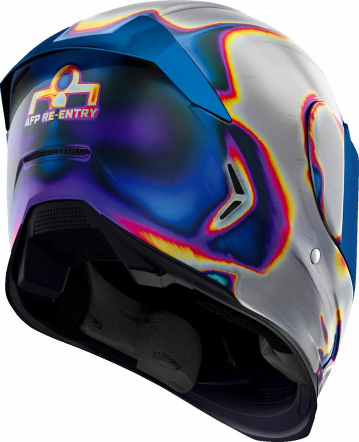 Sculpeed NECK ROLL REDUES JACKET/SUIT INTERference, FAG-FREE ICON OPTICS ™ Shield with Rapid-Rease ™ System, Linear Ported Ported Vents, Low-Profile Vents Throughout The Shell, Five-Piece Modules Liner WITH MOISTURE Locking System, Removable Breath Deflector and Chin Curtain, Handcrafted Composite Fiberglass FRP (Fiber-Reinforced Plastic) Shell