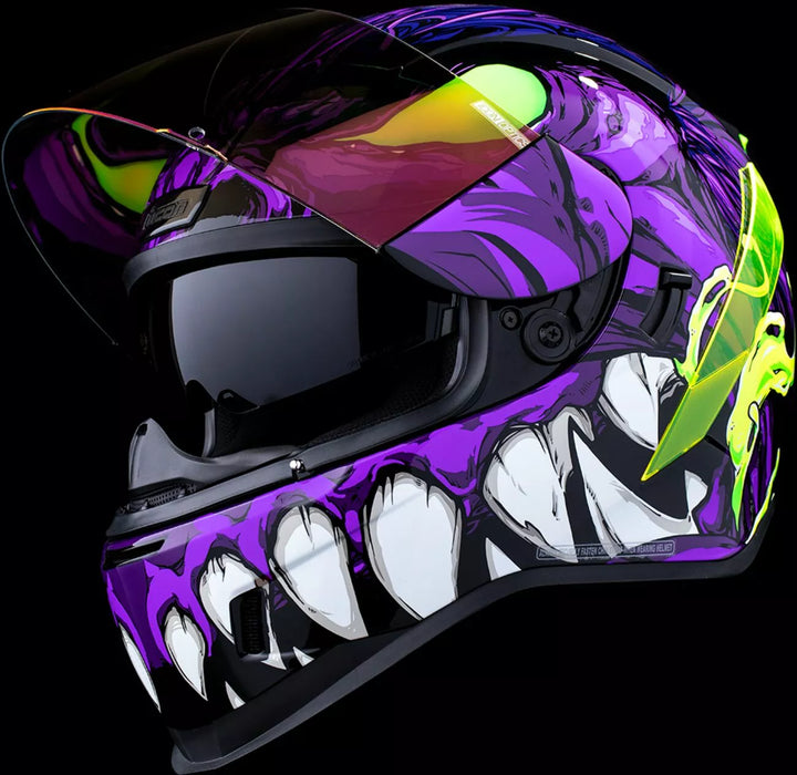Kontinuierliches Entlüftungssystem, Fag-Fag-freie Icon Optics ™ Shield mit Rapid-Release ™ -System, inspritzgeformte Polycarbonat-Schale für Festigkeit, interne Luftstromgeometrie, geformtes Halsrolle, Prolock ™ Switsch, das Äußere mit locking Shiving Swales Visor muss nur verwendet werden, während der Haupthochschild in der voll geschlossenen Position in der Lage ist, in der Lage zu sein, absagte, abnehmbarem, abnehmbarem, abnehmbarem, abnehmbarem, abnehmbarem, abnehmbarem, abnehmbarem, abnehmbarem, abnehmbarem, abnehmbarem, abnehmbarem. Wicking Liner, interne Lautsprecher -Taschen arbeiten mit Icons R.A.U. Das Bluetooth -Gerät umfasst Dark Smoke Dropshield ™ und Rubaton Black Speedfin ™