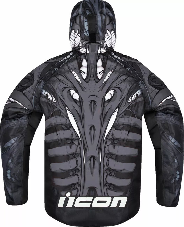 Airform Manik'r ™ Grafik auf der Vorder- und Rückseite der Jacke, 420d Polyester-Chassis mit 300D-interner Verstärkung, PU-beschichtetem Schalenmaterial mit DWR-Finish, D30® Abnehmbarer Viper-Rückenschutz; Ellbogen- und Schulter-Impact-Protectors, Bungee-Kabelstil-Kordelhaube, Airfly ™ -Menen-Vorder-Mesh-Panel mit Brust- und Rücken-Reißverschluss-Lüftungsschlitzen, Entlüftungsmanschettenschleizungen, Rückenschutz EN 1621-2 Level 1