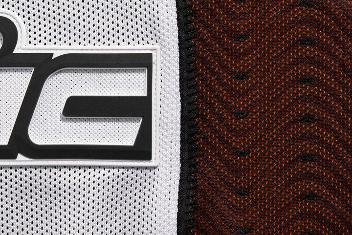 Langlebiger 300D-Polyester- und Eisen-Weave ™ -Mesh-Chassis, 1,2 mm-1,4 mm Tracspec ™ Leder in der primären Absturzzone, einstellbare Taille und Armriemen, ICON® Sport Fit, YKK® Reißverschlüsse, Rückenschutz EN 1621-2 Level 1, EN170-70-2