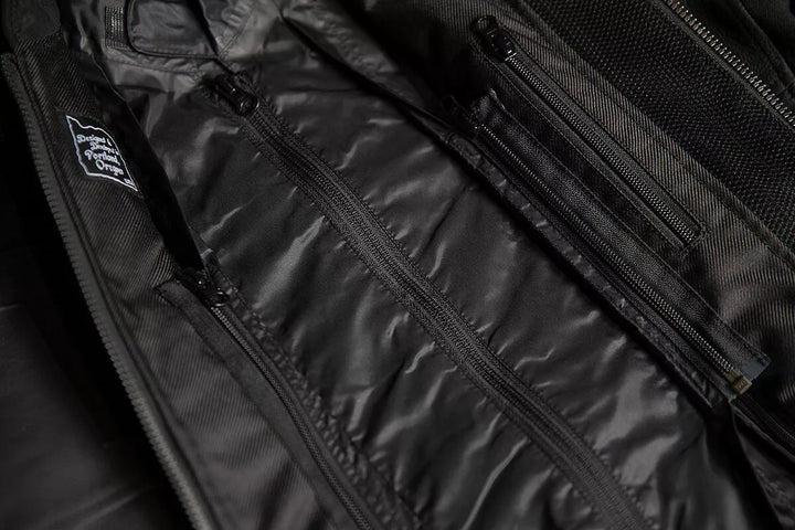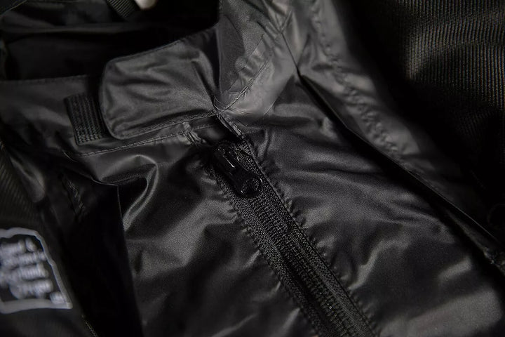 Haltbares Leder- und Textilgehäuse, Airfly ™ -Menenmitte vordere Stau-Mesh-Panel, Laserperforation an der Brust, Reißverschlüsse an Schultern, Manschetten und Rücken, elastische Expansionskollektoren an den Ellbogen und im oberen Rücken, Taillenanmelder, Removorof ungesultable wasserdichte EN17092-3: 2020-AA-Klasse