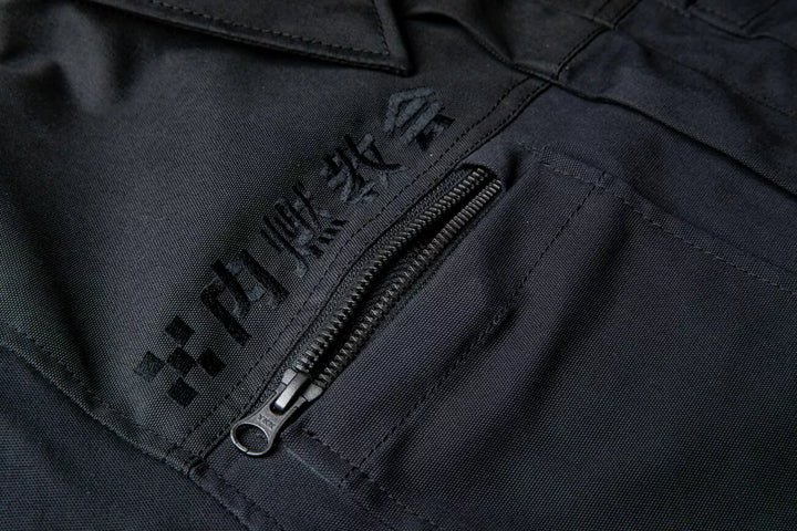 Ellbogen- und Schulter -LP1 -Impact -Protectors, Reißverschlussschlitze an Manschetten und Brust, YKK® Reißverschlüsse, haltbarer 400D -Polyester- und Baumwollstreck -Leinwand -Chassis, abnehmbarer, adierbarer Back -Protektor, ICON® Relaxed Pass