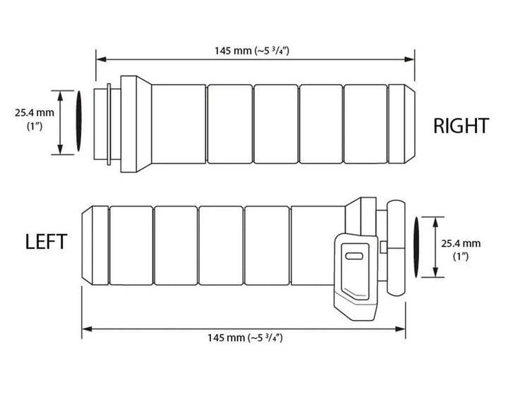 * Passt 1 '(25,4 mm) + 1' (25,4 mm) Lenker / Länge 125 mm. ** Nur für Harley Davidson® -Modelle mit manuellem Drosselwesen geeignet. Spezifikationen: