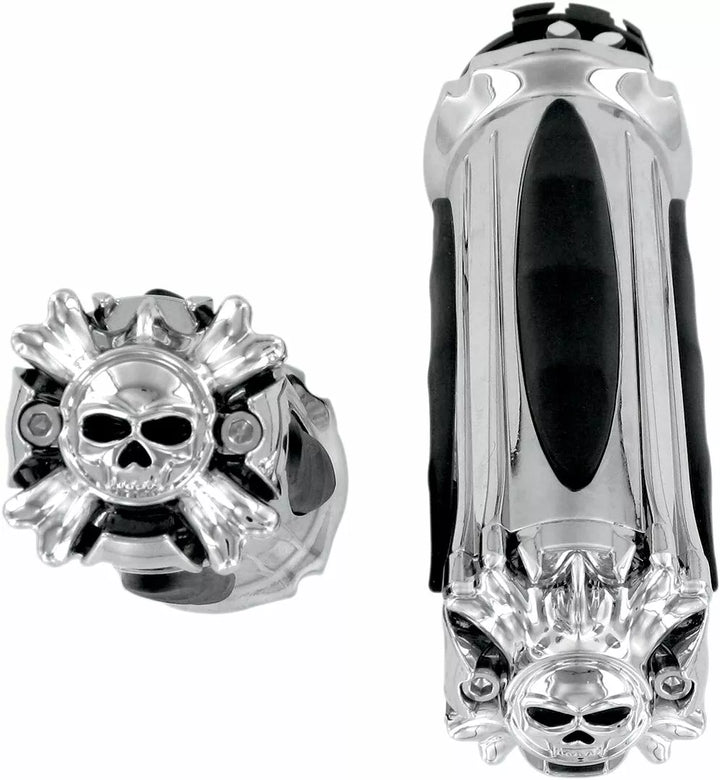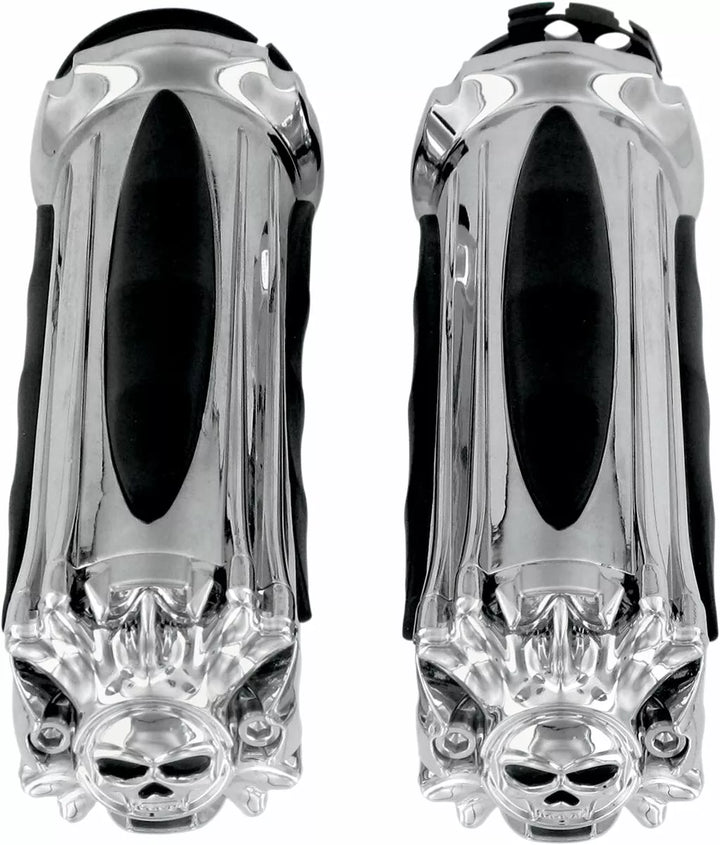 Wicked Looks, Wicked Comfort, Grip Bodies sind glatt Chrom mit vibrationsabsorbierenden Gummi-Einsätzen, Zombie-Endkappen verbessern den Look, Premium-Zombie-Griffe umfassen Drosselklappen Boss