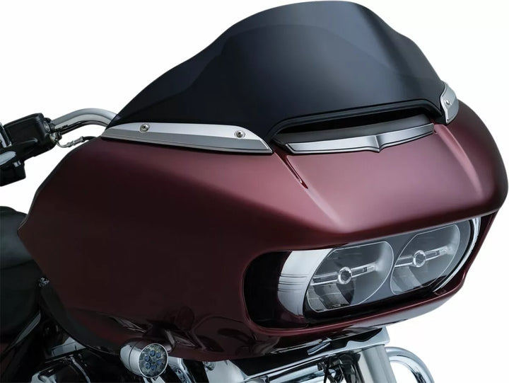 Verbessert den Übergang von Windschutzscheiben zur Verkleidung auf Straßengleitmodellen, die aus leichten, inspritzgeführten ABs hergestellt werden, die Installation der glänzenden schwarzen Trimmstücke wiederverwendet die OEM-Hardware, während die Chrome-Version mit Fleckenstahlstahl-Ersatzschrauben ausgestattet ist