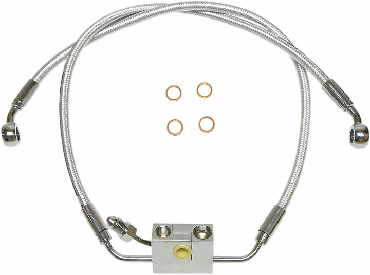 Wenn die montierende Bremsleitungsbaugruppe von Aktien auf '18+ Dual Disc Softils ersetzt wird, ist kein Adapter erforderlich. Unter Verwendung von AN-3-Armaturen wird die obere Linie an die Magnum-untere Montage angeleitet. Bremsleitungen werden mit PTFE-Innenrohre, Dupont ル Kevlar ᆴ Aramidfaser, Premium Signature Magnum Braids und AußenpvC-Jacke-Konstruktion, die mit Harley-David-Abneigung gekostet werden, und die Break-Break-Break-Break-Break-Break-Break-Break-Break-Break-Break-Break-Break-Break-Break-Break-Break-Break-Break-ABS-Abneigung geführt werden. Konjunktion mit alternativen Länge Upps-Linien, An-3-Verbindung