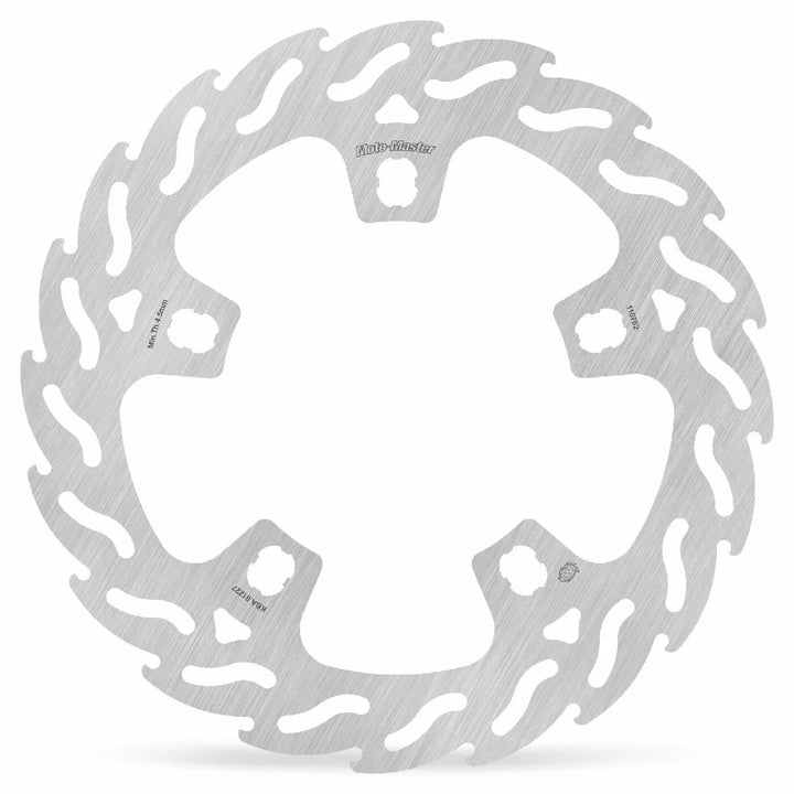 Flammförmige Valentierungsschlitze und äußeres Umfang sorgen für eine gleiche Menge an Kontaktoberfläche zwischen dem Bremsblock und der Scheibe während der WHO -Rotation der Scheibe, glatte und vorhersehbare Bremswirkung, mit der Sie härter bremsen können. Doppelmännisch für perfekte Ausstattung und Flachheit. Für die beste Leistung empfehlen wir die Verwendung von Moto-Master-Bremsbelägen mit der passenden Pad-Verbindung, die am besten zu Ihrer Art von Reiten passt.