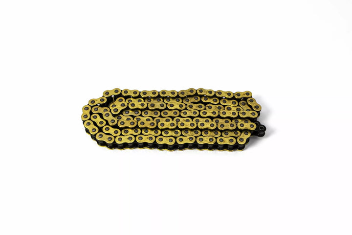 Die GP -Serienketten bieten eine leichte Rennkette, die für die härtesten Bedingungen im professionellen Motocross -Rennen ausgelegt ist. Die Stifte sind hart verchromt, wodurch die Lebensdauer bei nassen und schlammigen Bedingungen erheblich zunimmt